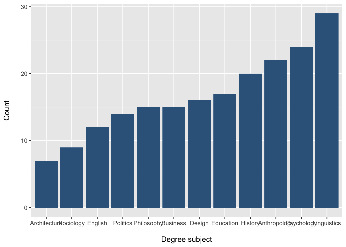 [36] "Architecture" "Education" "Philosophy" "Linguistics" "Philosophy"