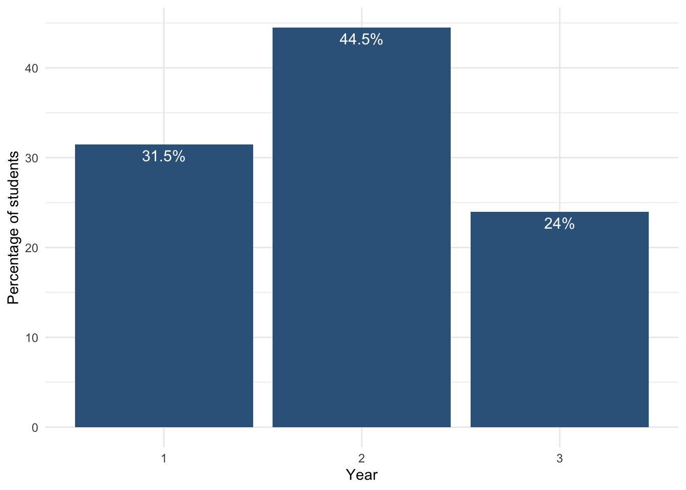 each bar shows the percentage of students in each year