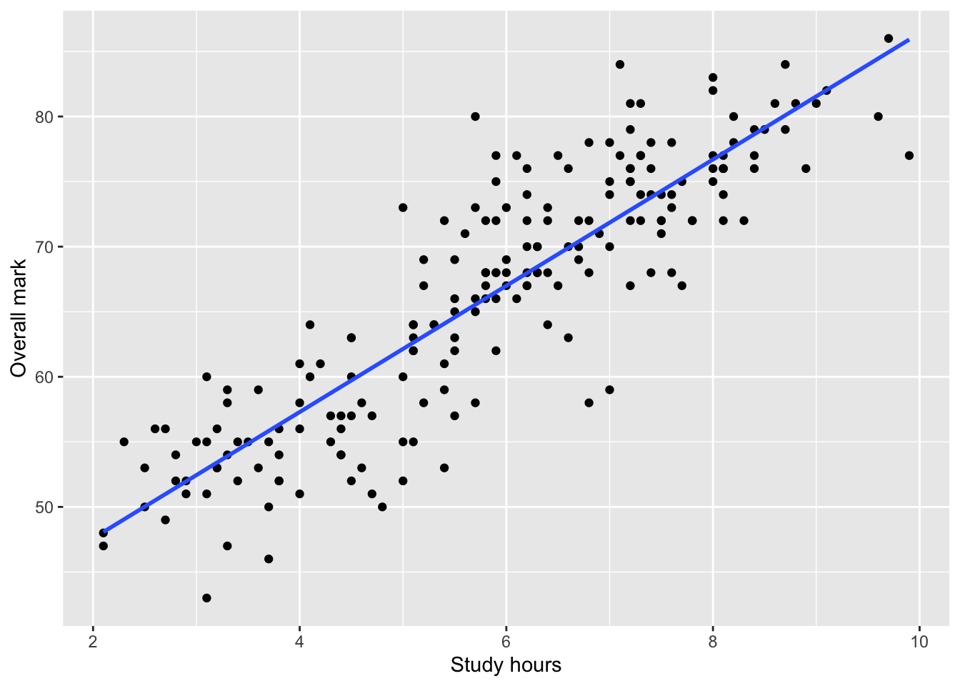 ggplot(students, aes(x = Study_hours, y = Overall_mark)) +